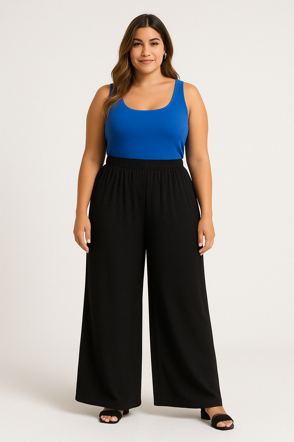 A calça pantalona feminina plus size é uma peça essencial para quem busca estilo e conforto em qualquer ocasião. Com cintura alta e caimento fluido, ela valoriza a silhueta e garante liberdade de movimento, perfeita para o dia a dia ou ocasiões especiais.